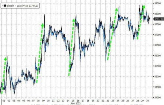 比特币和GameStop等投机股纷纷上涨。加密货币大幅反弹,比特币连续第三个月上涨,重回38000美元上方。以太坊在11月份飙升超过 12%,为3 月份以来最好的一个月,也是自 5 月份以来首次月度表现优于比特币。